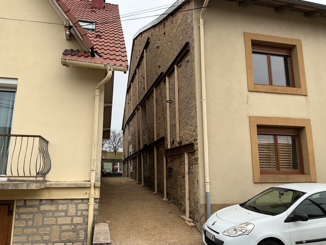 Des ouvertures mal réalisées ont fragilisé un mur en pierres sur toute sa hauteur, menaçant directement le bâti voisin.