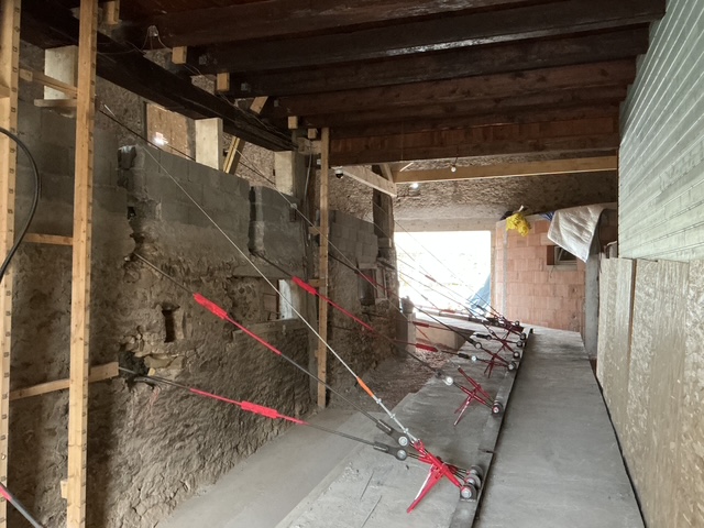 • L’installation de tirants métalliques reliant la façade au massif, assurant la retenue du mur